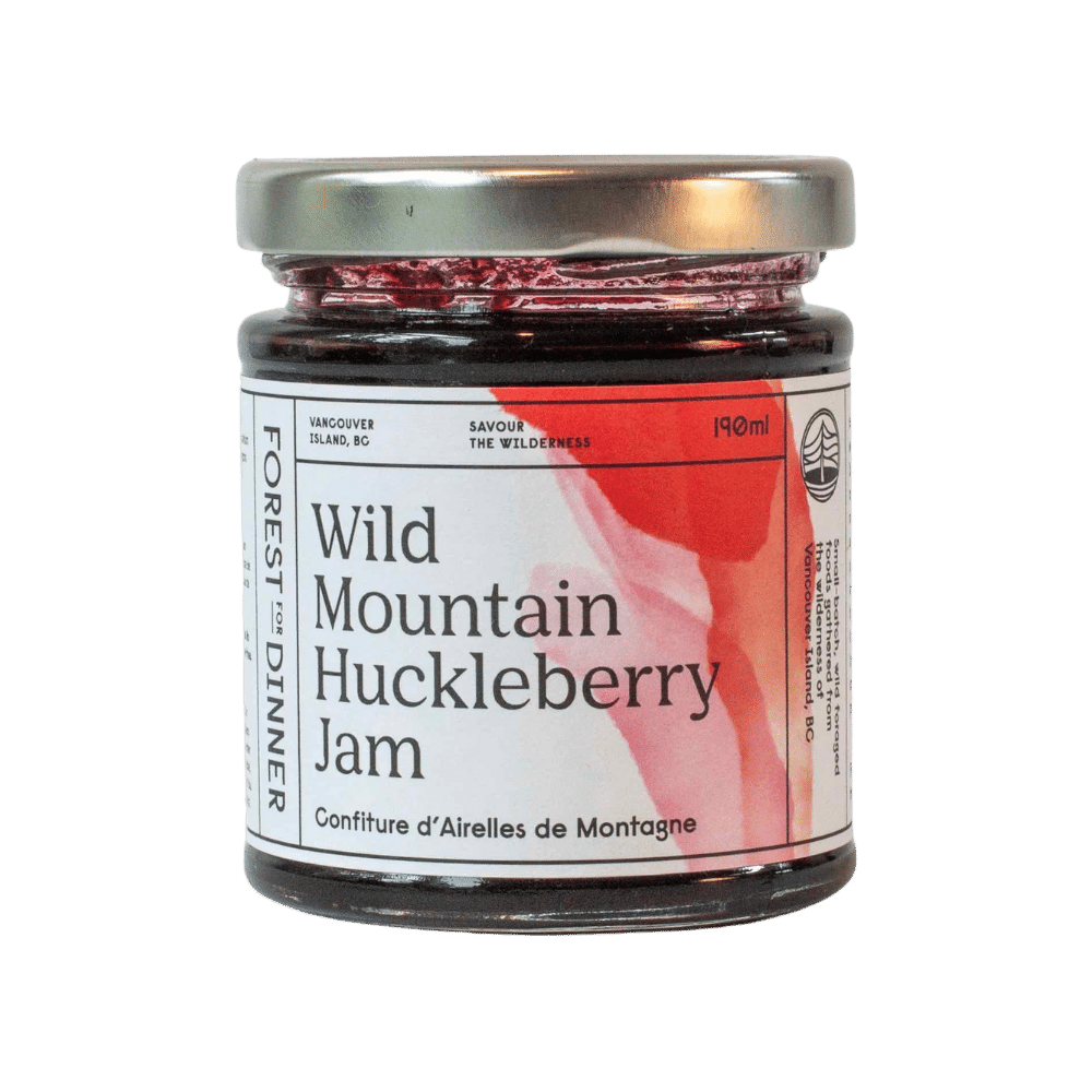 Hand-picked from the higher elevations of Vancouver Island’s coastal mountains, prized mountain huckleberries soak up the sun to grow plump and flavourful. They are distinct from the little red huckleberries commonly seen at the edge of Pacific Northwest forests—mountain huckleberries are juicier and darker in colour. Once you taste this jam, you’ll understand why we go to such great lengths to forage these beauties!